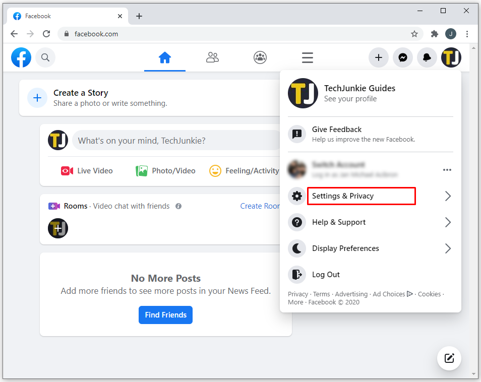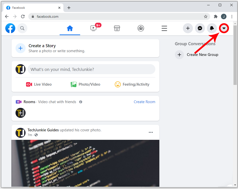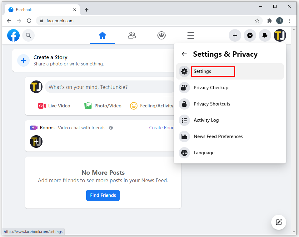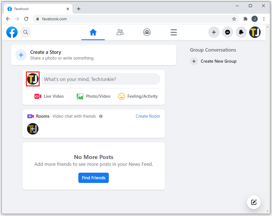 - Once you’re on your Facebook newsfeed, click on the profile photo.