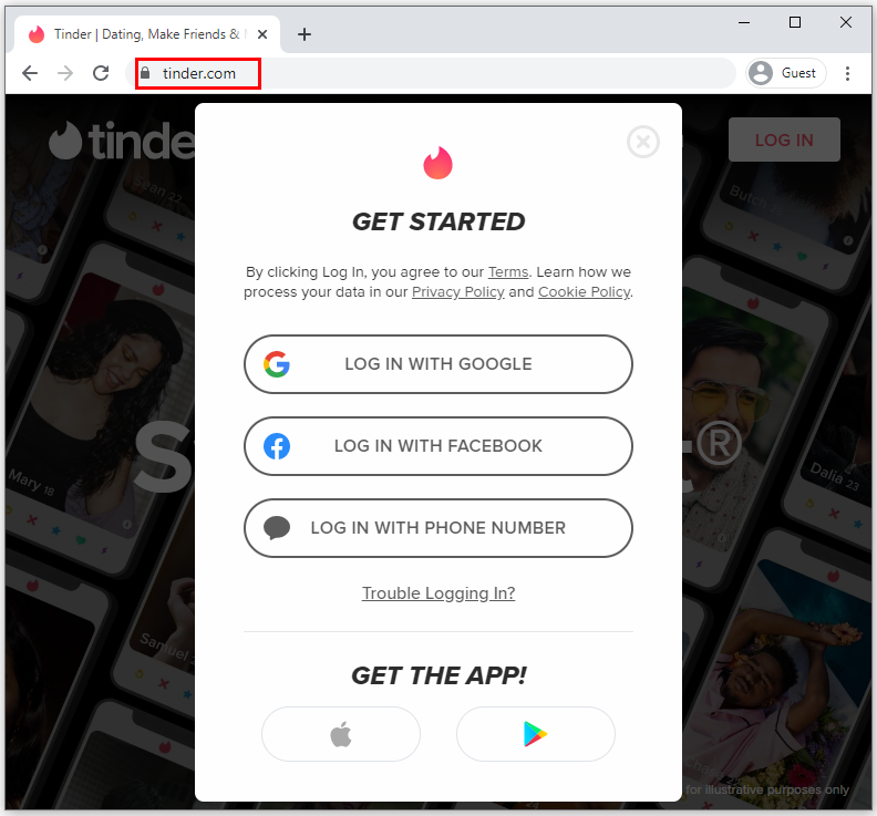 - Log in to your Tinder account via the app, or go to the Tinder website.