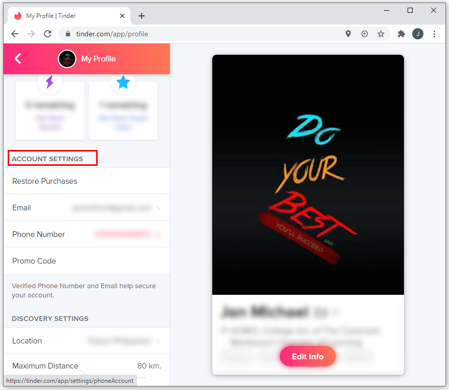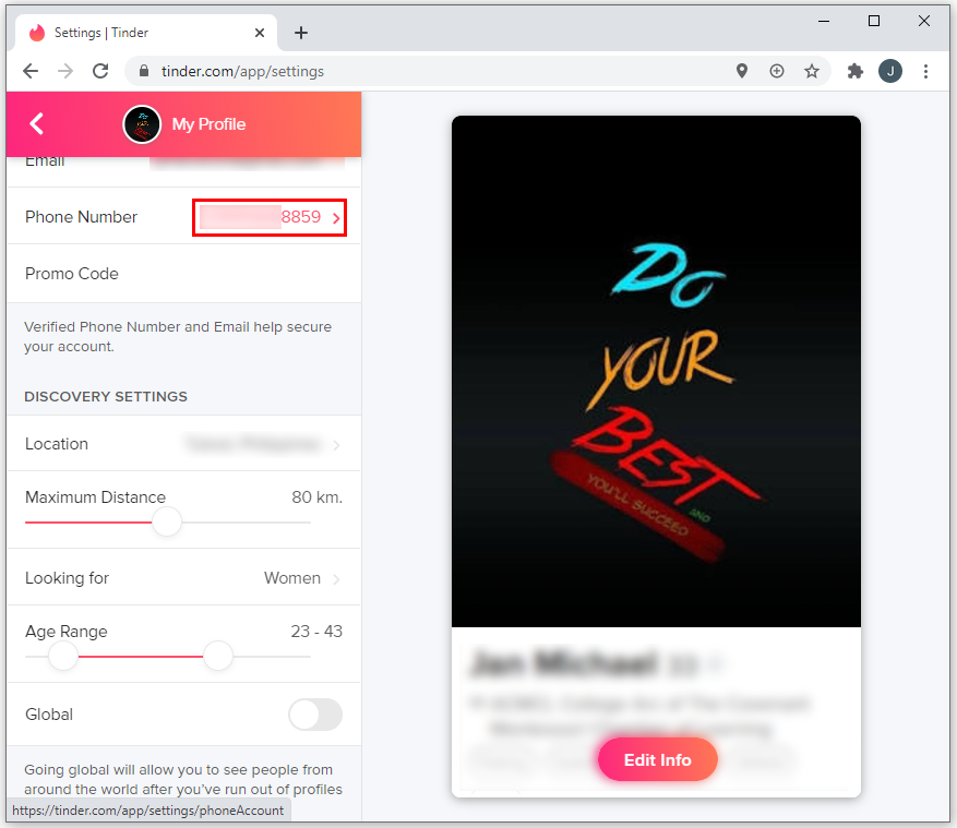 The good news is that all users can change their phone number, regardless of what platform they used to set up a Tinder account. Check out these steps to do so: