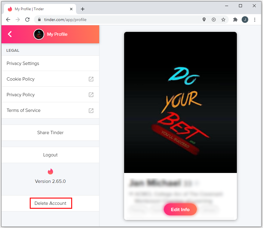 The easiest way to cancel Tinder is through the website. This is how to do so: