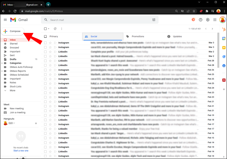 - Enter your inbox and tap the “Compose” icon in the top-left corner.