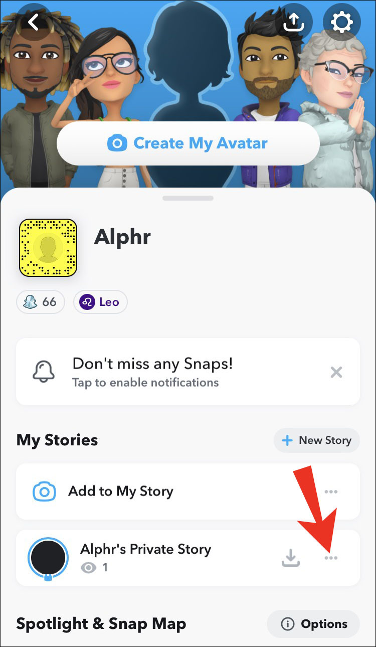 - Navigate to the private story you want to adjust and tap the “More” button beside the story’s name. The button is shaped like three dots.