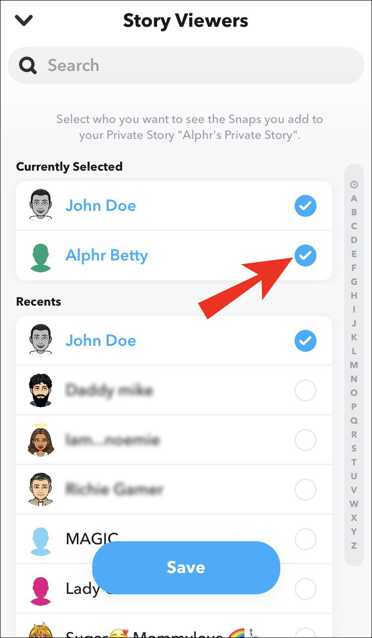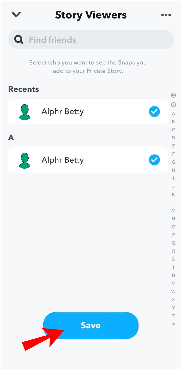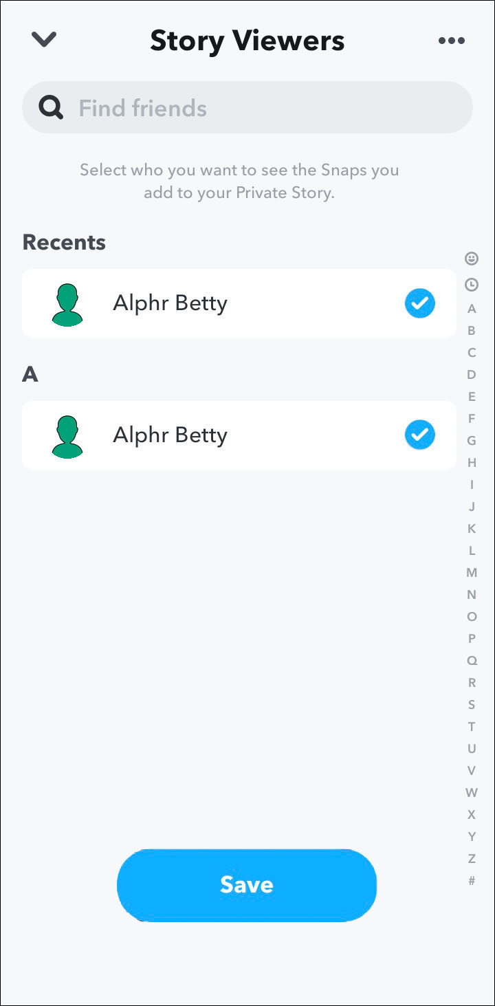 - A list of people who can watch the private story will pop up. Everyone with permission will be marked with a blue tick.