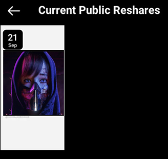 - This will open the “Current Public Reshares” page to see how many people shared your post to the Instagram Stories.