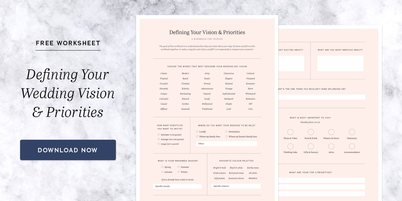 Remember when we spoke about finding that balance between both personal and practical considerations? This is where details like your budget, guest lists and supplier availability become super important in your decision making process.