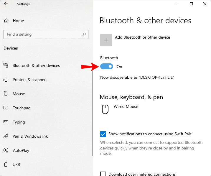 - Toggle the Bluetooth switch to turn it on.