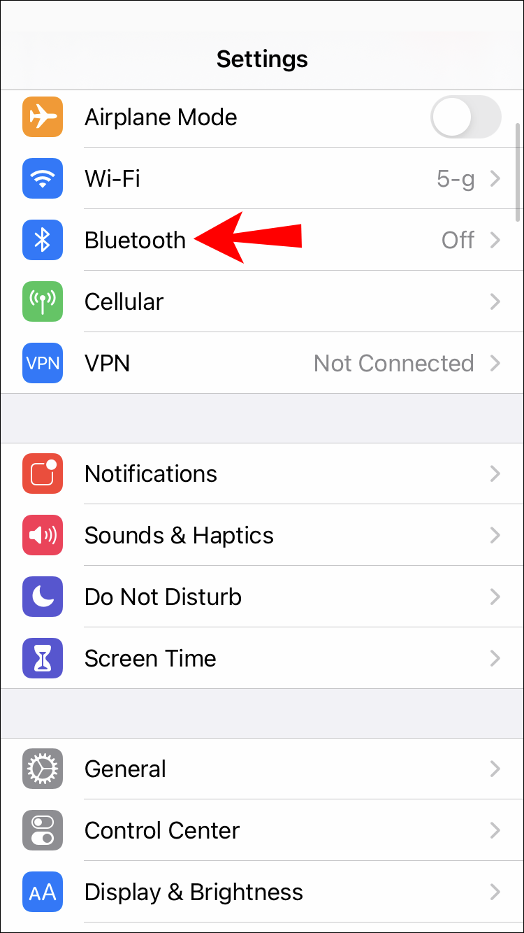- Find Bluetooth on the list of options.