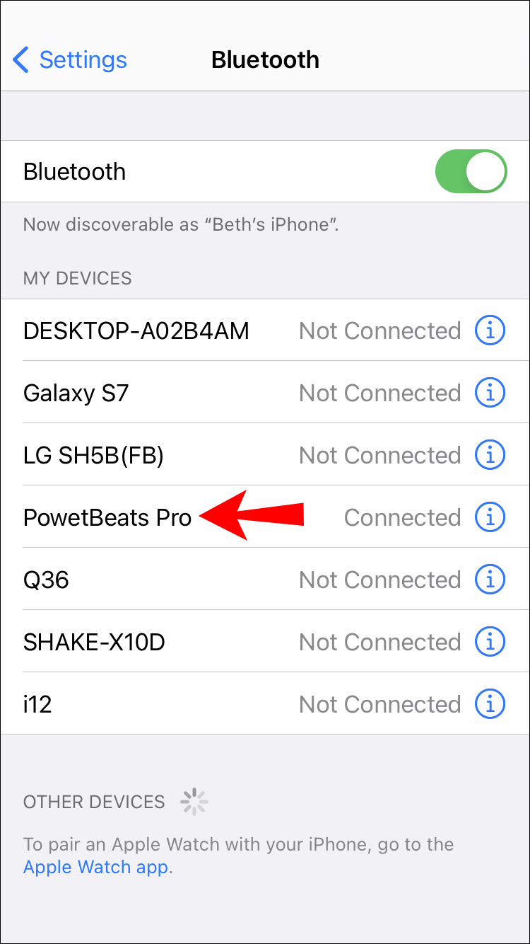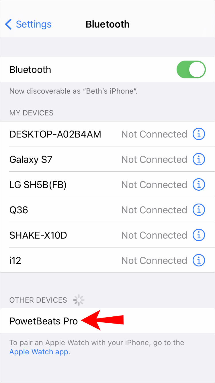 - Find your Beats Wireless on the list of devices.