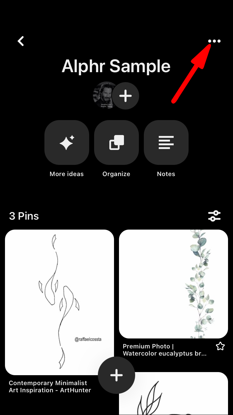 - Tap the three-dot button on the right side of the board’s name.
