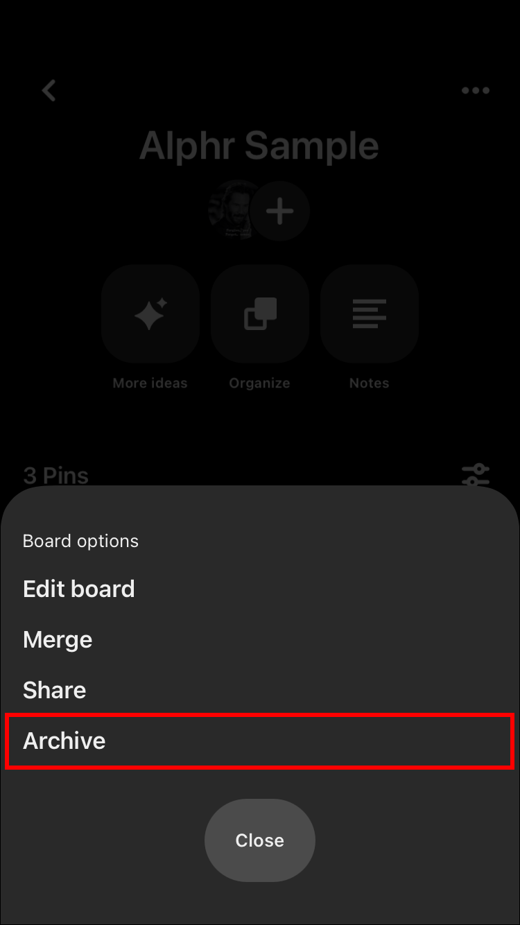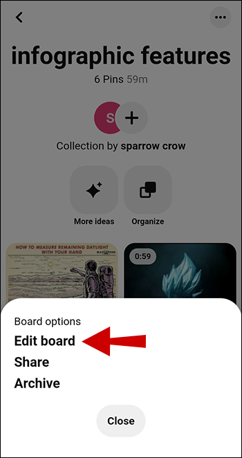 Here’s how to archive a Pinterest board on your Android device: