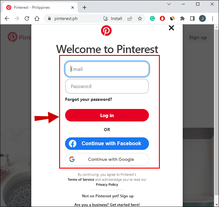 - Log in to your Pinterest account.