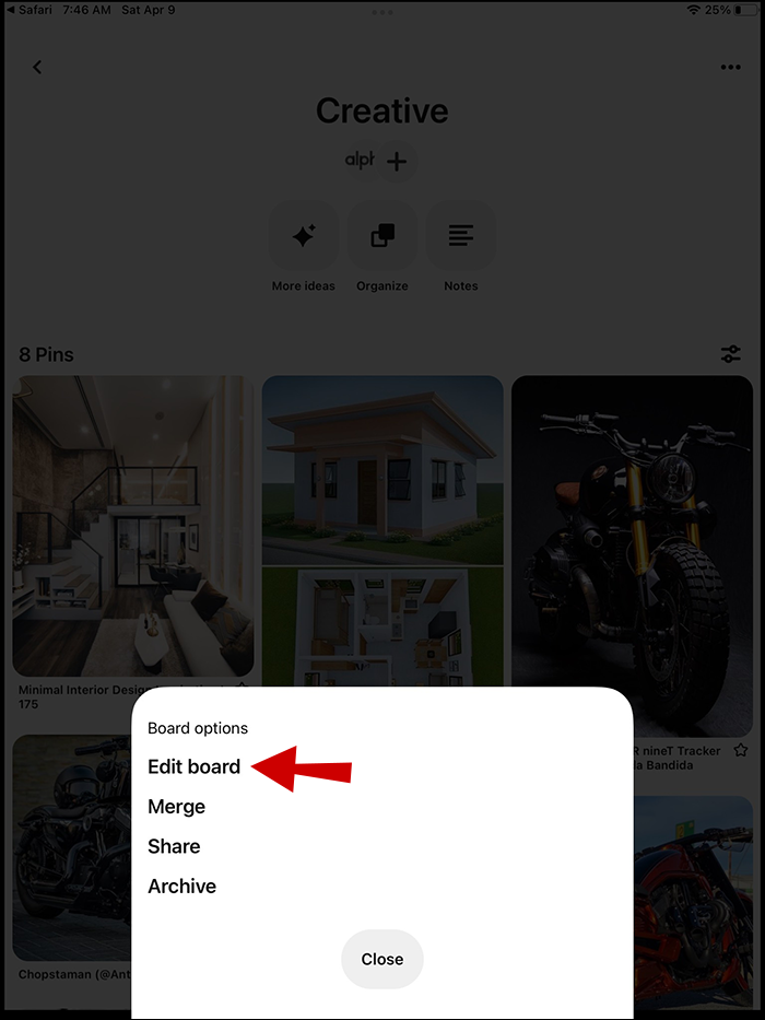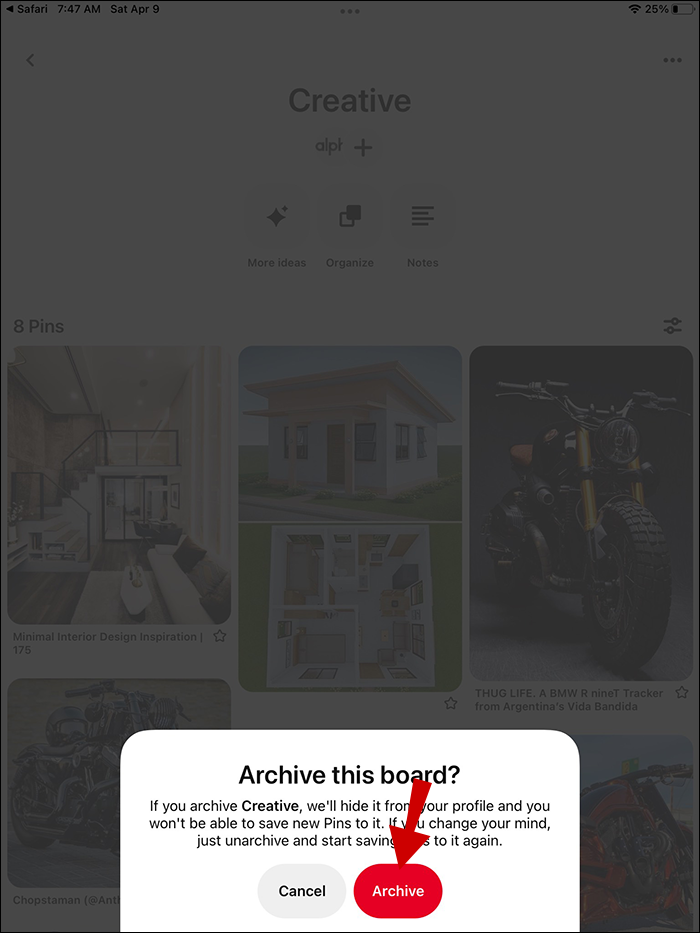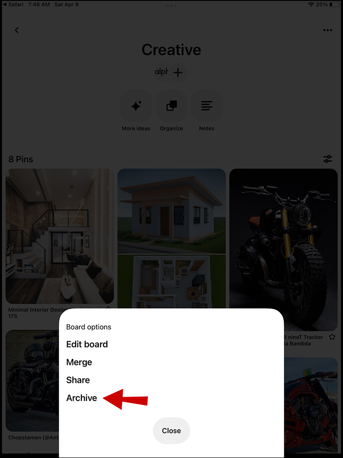 How to Archive a Board in Pinterest on an iPad