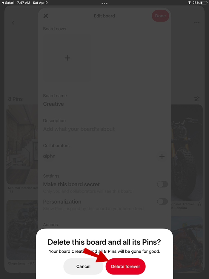 How to Delete a Board in Pinterest on an iPad