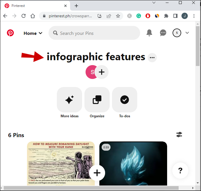 After saving the necessary pins, follow these steps to delete a Pinterest board on your PC: