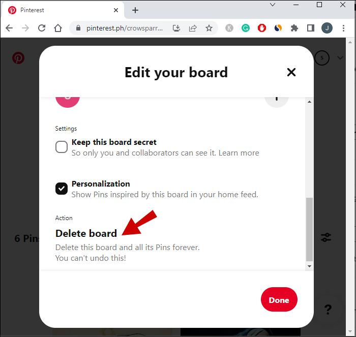 If you’re done with a Pinterest board, you can delete it following these steps: