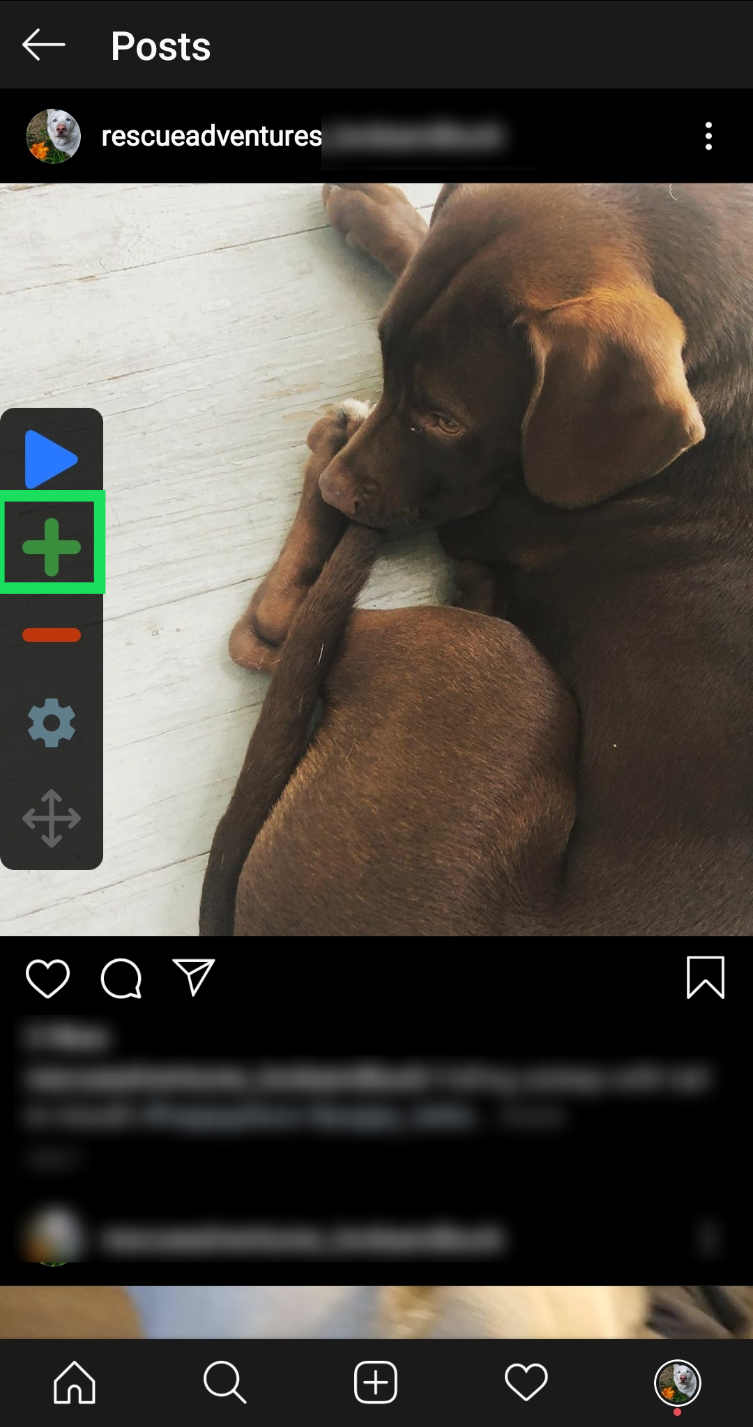 - Drag that circle to the first post on your home page, on the left side, and tap the cogwheel (Settings).