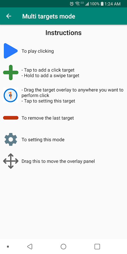 In the time delay box, you can leave it at 100 milliseconds or, if your phone is perhaps a little sluggish, change it to 200 or 300 milliseconds. This extended delay gives the app time to run and load information so that the auto tapping doesn’t override it.