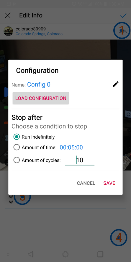 - Launch Instagram and the Auto Clicker app.