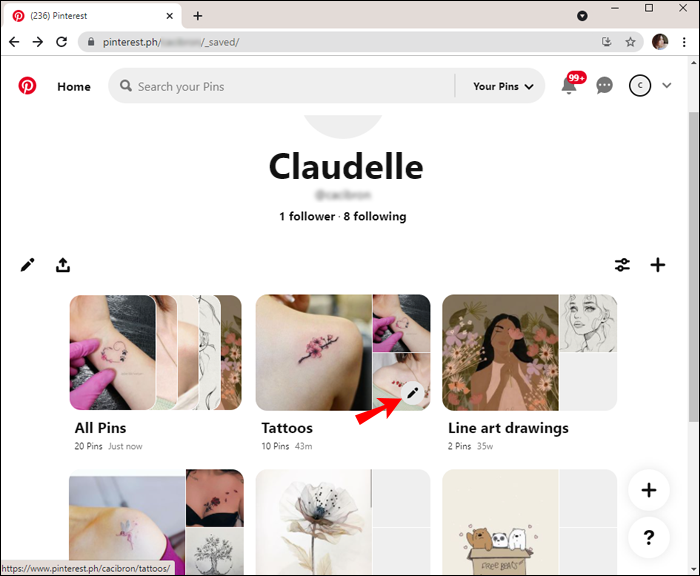 To delete all your pins on Pinterest on your PC, follow the steps below: