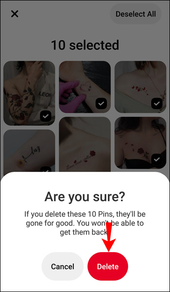 The process of deleting all your pins in Pinterest on your Android device is very similar. This is how it’s done: