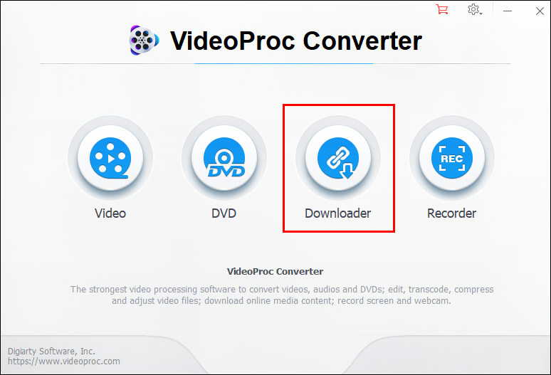 - Open VideoProc Converter and click “Downloader” icon on main interface.
