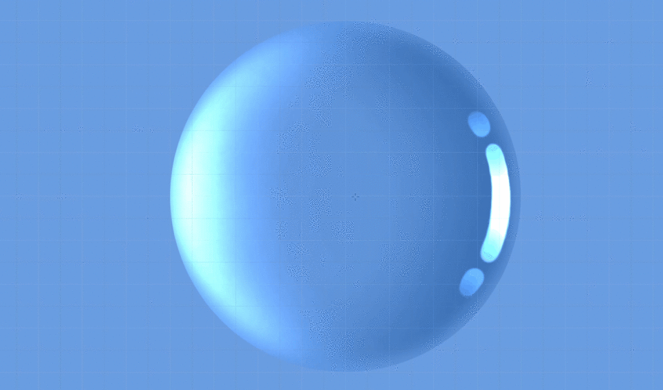 The light reflections are more focused on the bottom of the spherical shapes. Remember, the brighter spots are actually at the opposite side from where the light hits the water drops.