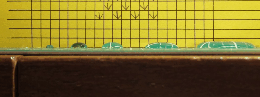 We only looked at a water drop from above and therefore only worked with circles. When viewed from the side, the drop shows it's flat underside. However, it can be flatter or rounder, depending on the surface below! It depends on whether the material of the surface is hydrophilic, which means that it attracts water, or hydrophobic, meaning that it repels water.