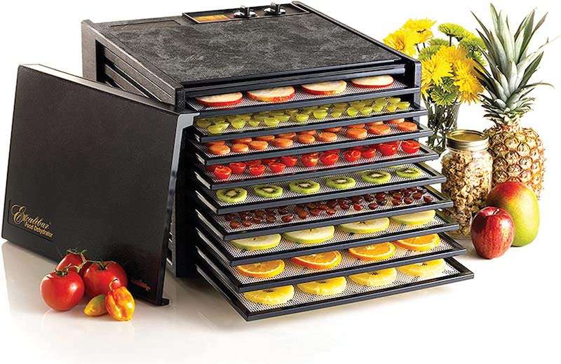 | Excalibur Food Dehydrator 9-Tray Electric with 26-hour Timer This dehydrator is amazing and I love that it features a timer so you can set it and forget it. SIZE: 9-trays and 15 square feet of drying space provides extra-large capacity TIME AND TEMPERATURE: Features a 26-hour timer and adjustable thermostat from 105 to 165 degrees F. Buy On Amazon ; |