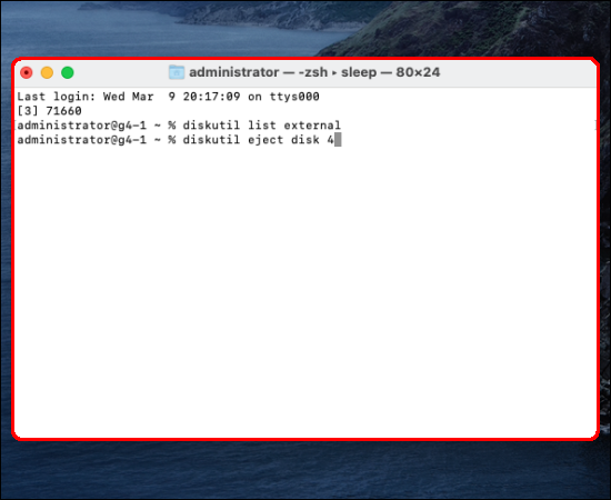 The “Terminal” app is also pre-installed, so there’s no need to worry about downloading anything. Running a command in “Terminal” to eject the hard drive will force quit the drive. So again, ensure all your files are saved with no programs running in the background. Here’s how to quit the external hard drive using “Terminal:”