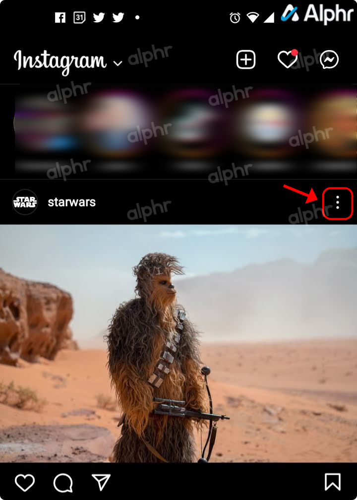 - Find the post you want to grab the URL from, then tap or click on the “vertical ellipsis” (vertical three-dot icon) to open the post options.