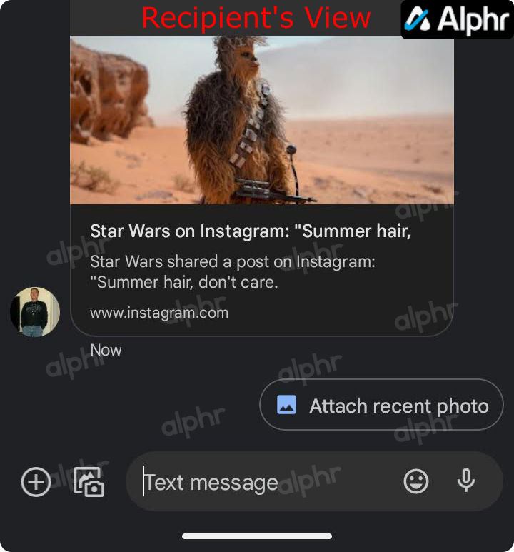 - Depending on the source, the message will most likely include an image or thumbnail when sent to someone directly via Messenger, SMS, etc.