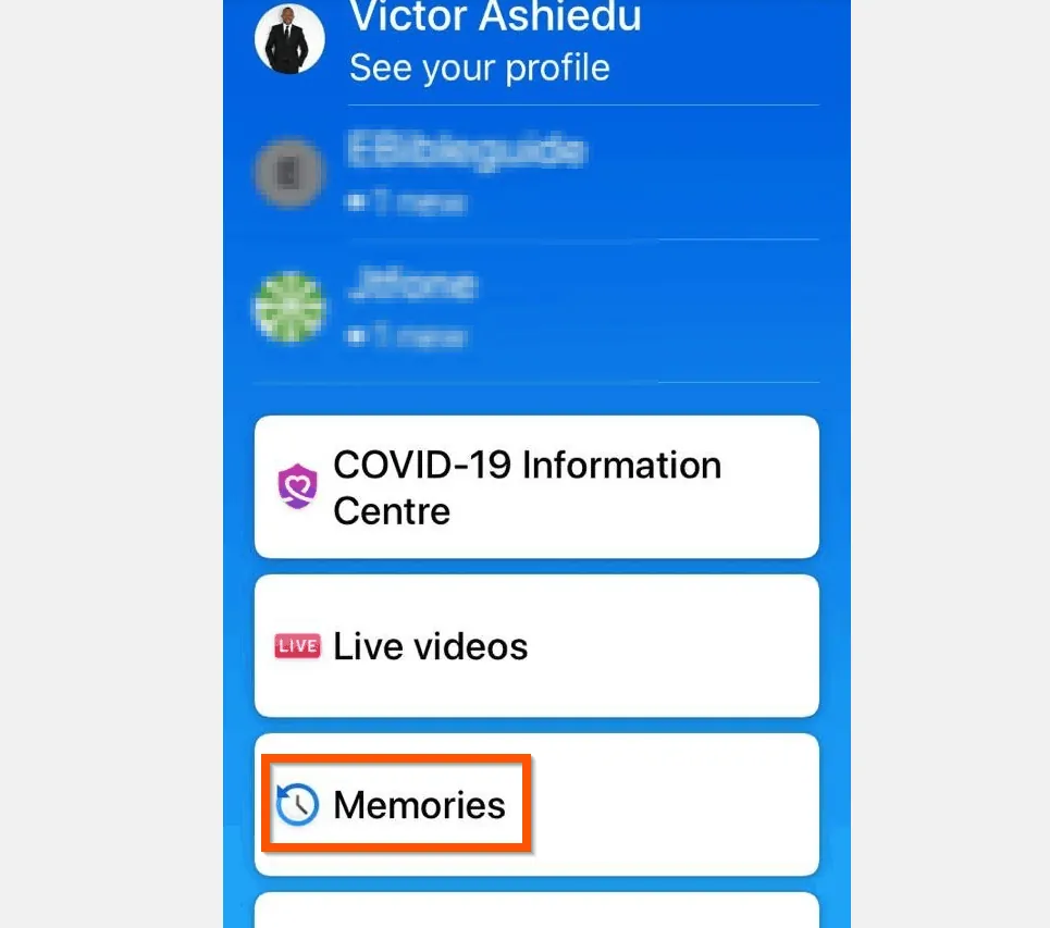 - Finally, from the menu options, tap Memories.