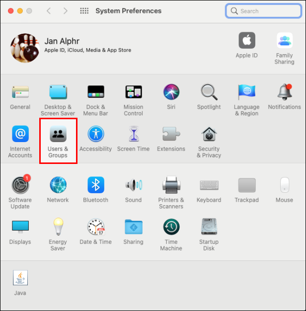 - Find and click on the Users & Groups icon.