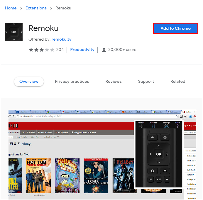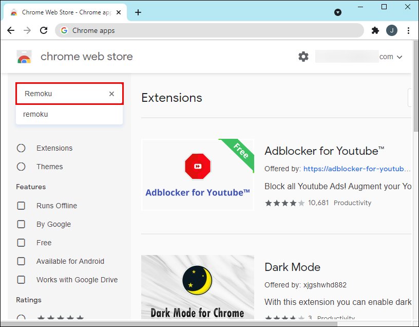 - Type in “Remoku” in the search bar. There should be only one extension on the results page.