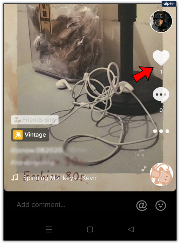 - Tap on the video you’ve posted and look at the heart symbol on the right-hand side to see your likes.