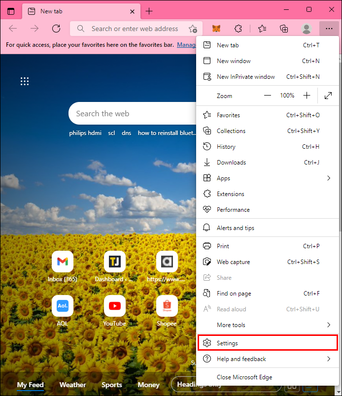 - Open the browser and press the three horizontal dots in the right part of the window.