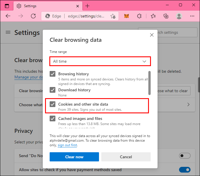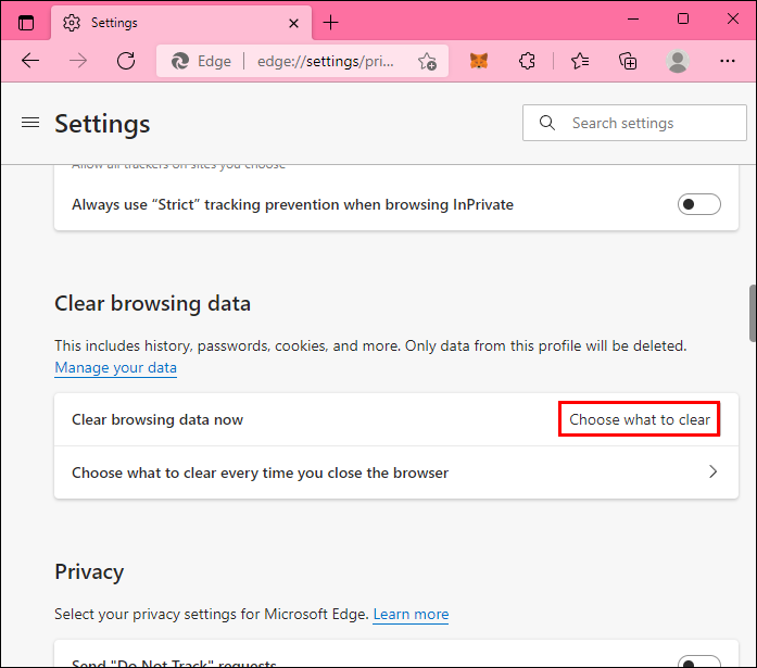 Note that Microsoft Edge doesn’t precisely differentiate between browsing data and cache, so this method will remove both.