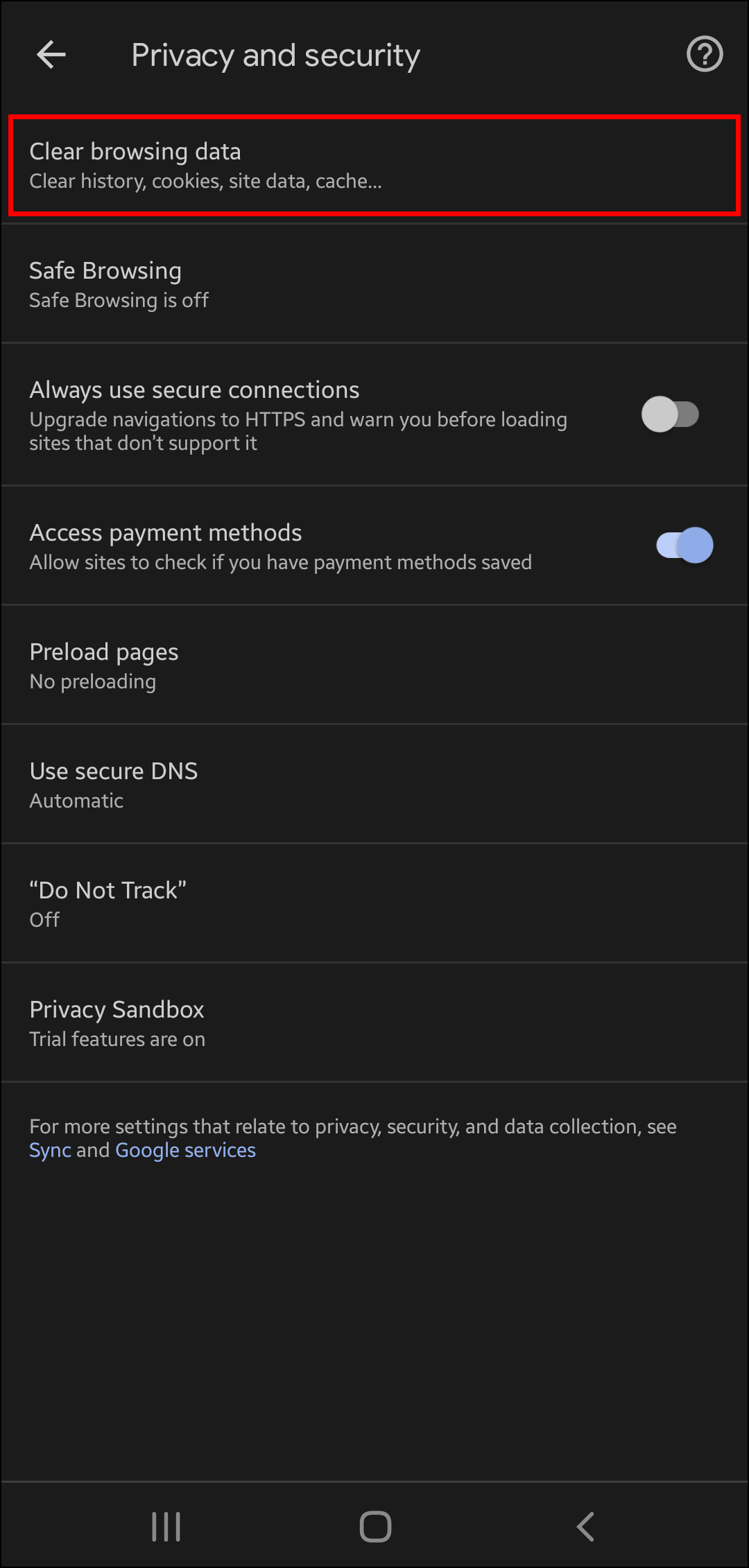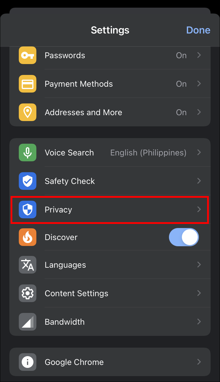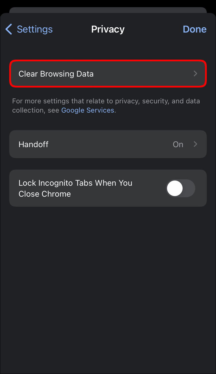 - Navigate to Clear browsing data and tap Choose What to Clear.