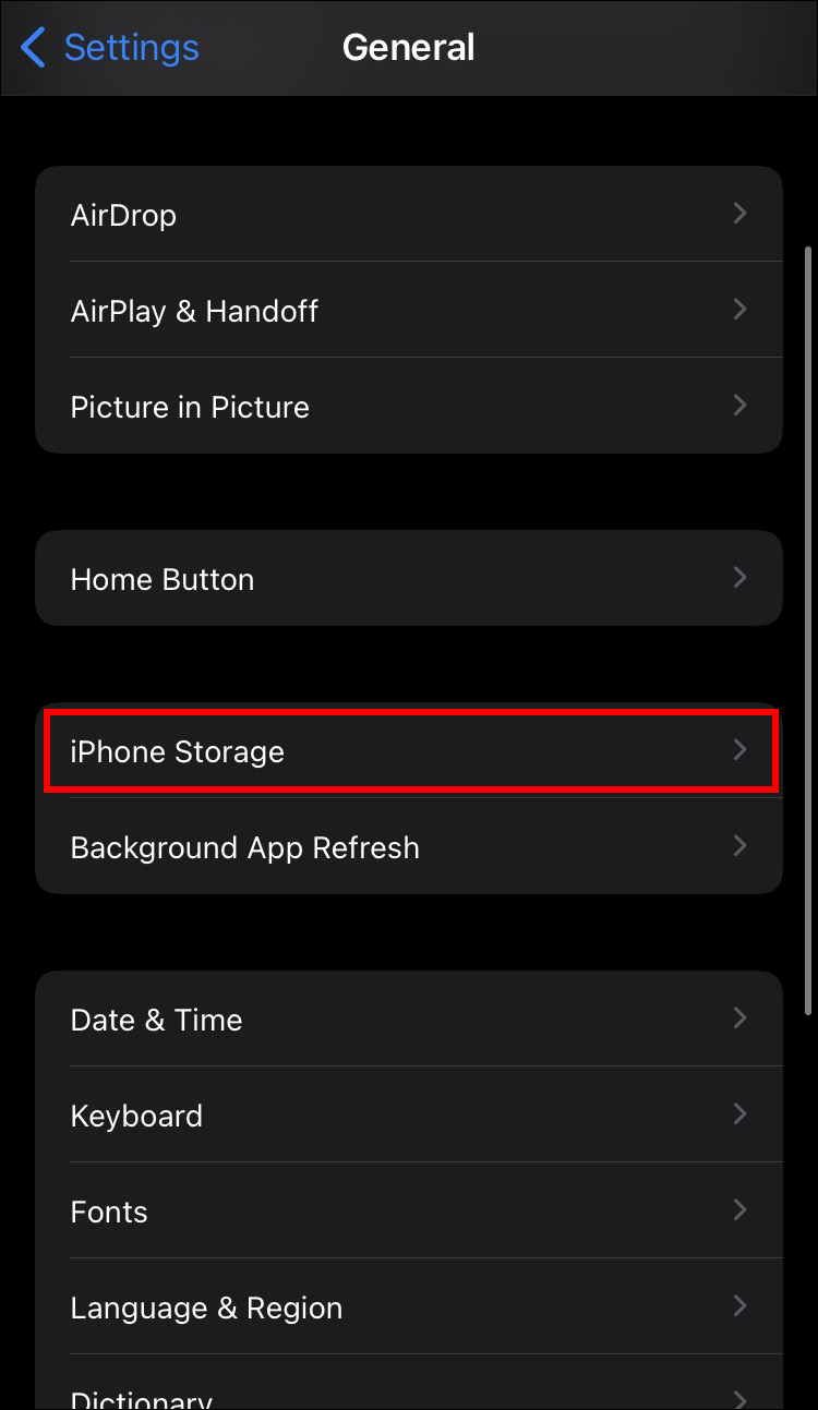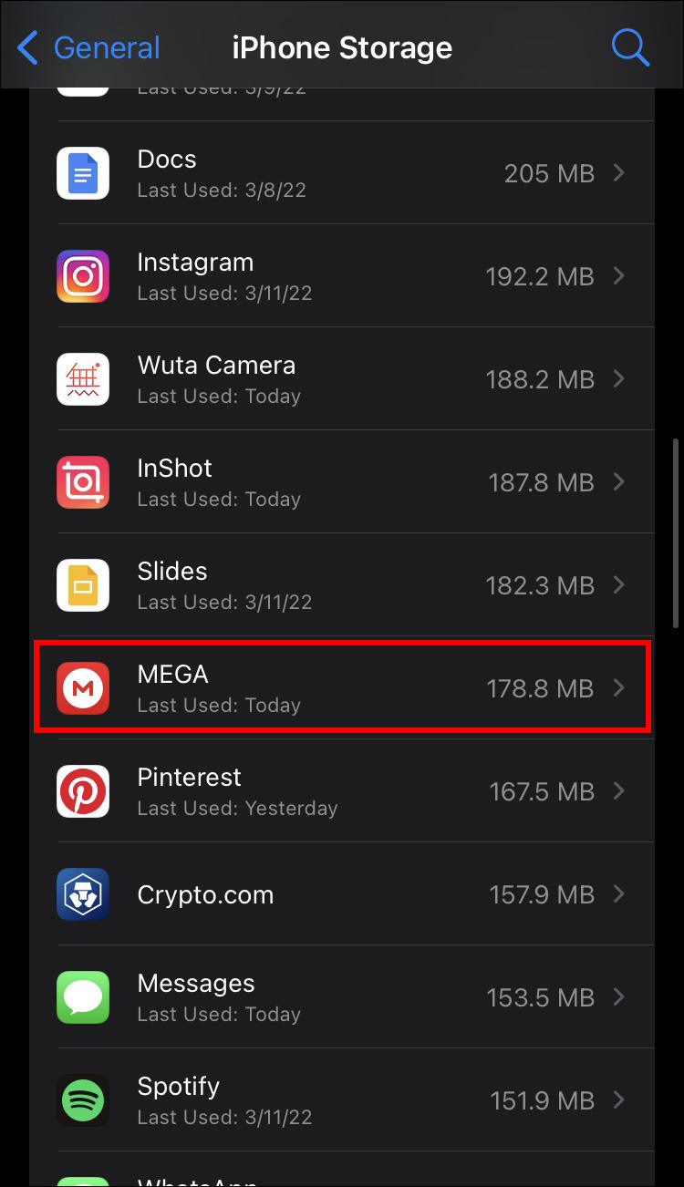- Choose iPhone Storage, navigate to the MEGA mobile app, and select it.