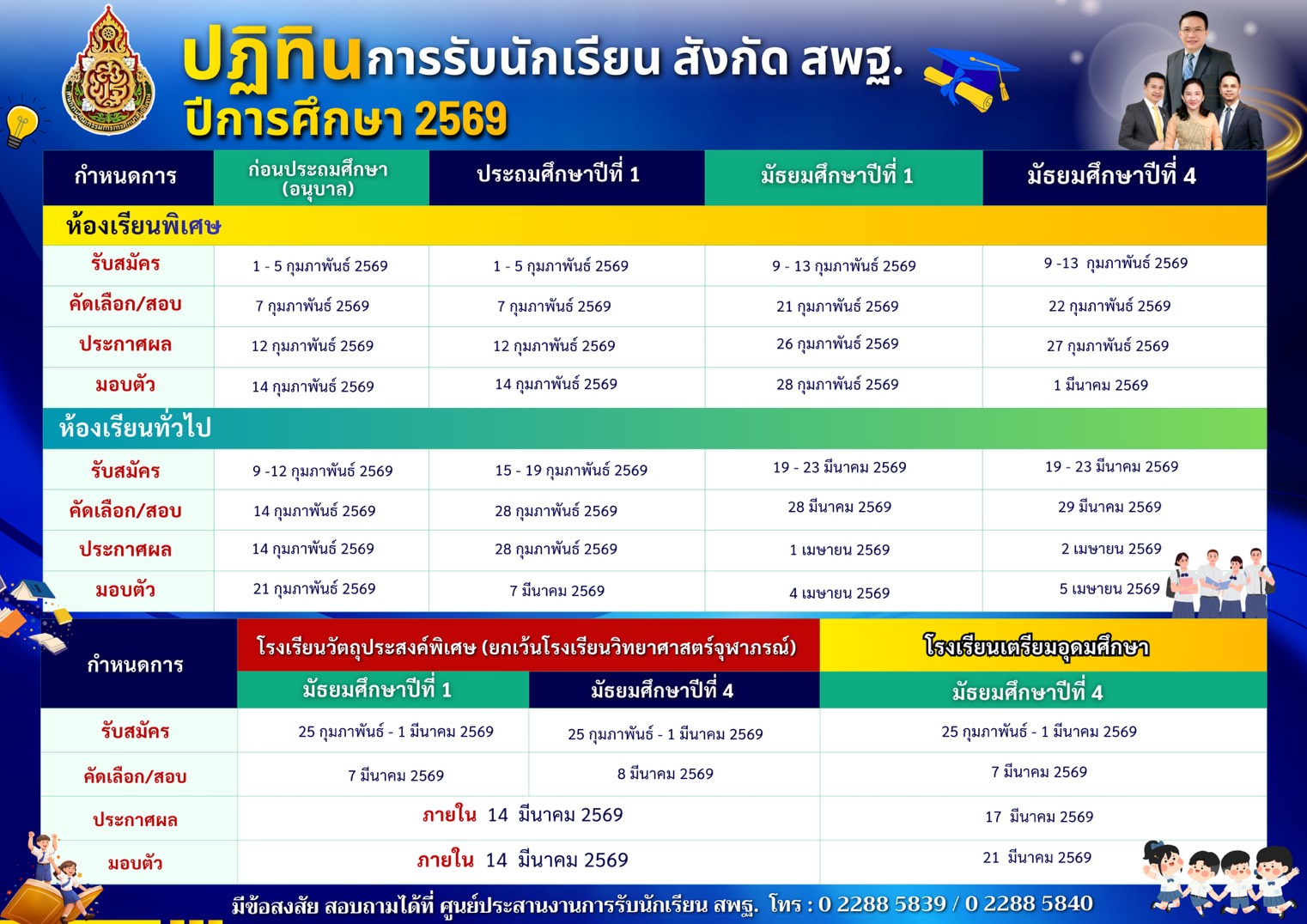 กำหนดปฏิทินการรับนักเรียน สังกัด สพฐ. ปีการศึกษา 2569 ห้องเรียนพิเศษและห้องเรียนทั่วไป