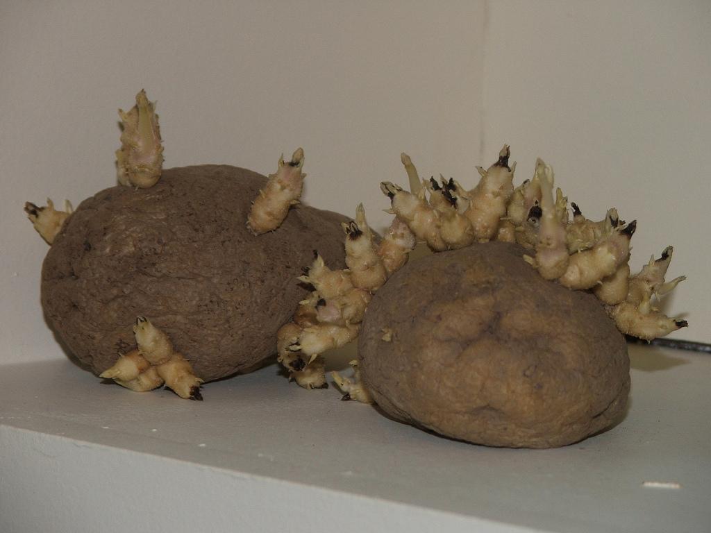Potatoes remain alive even after they are picked. So, if they are kept in humid climatic surroundings, they eventually start forming new sprouts, which you can see coming out through their skin. Although you can cut these sprouts and use the potatoes, they lose their quality and nutrient level, as the starch in the potatoes will have converted to sugar.