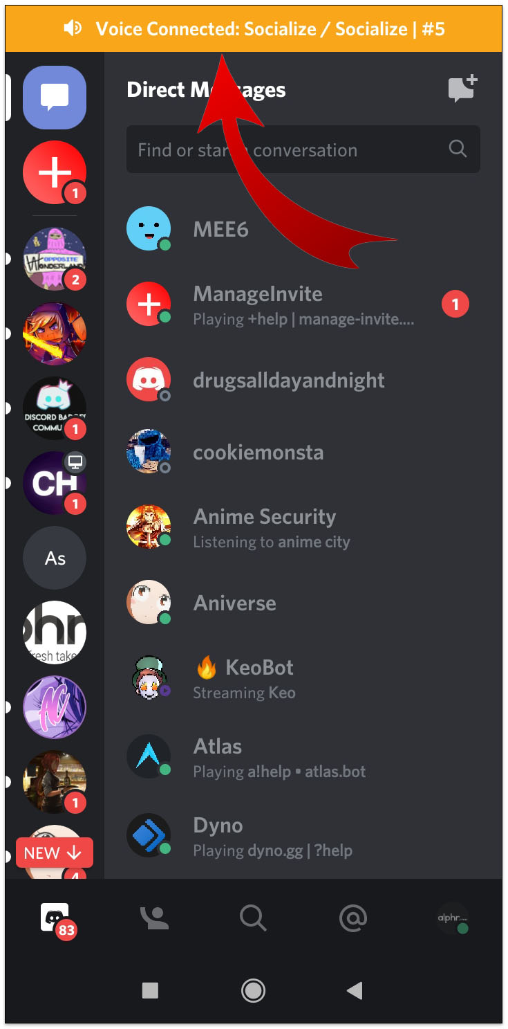 • If you’re in the voice channel right now, there will be a green line on the top of the screen.