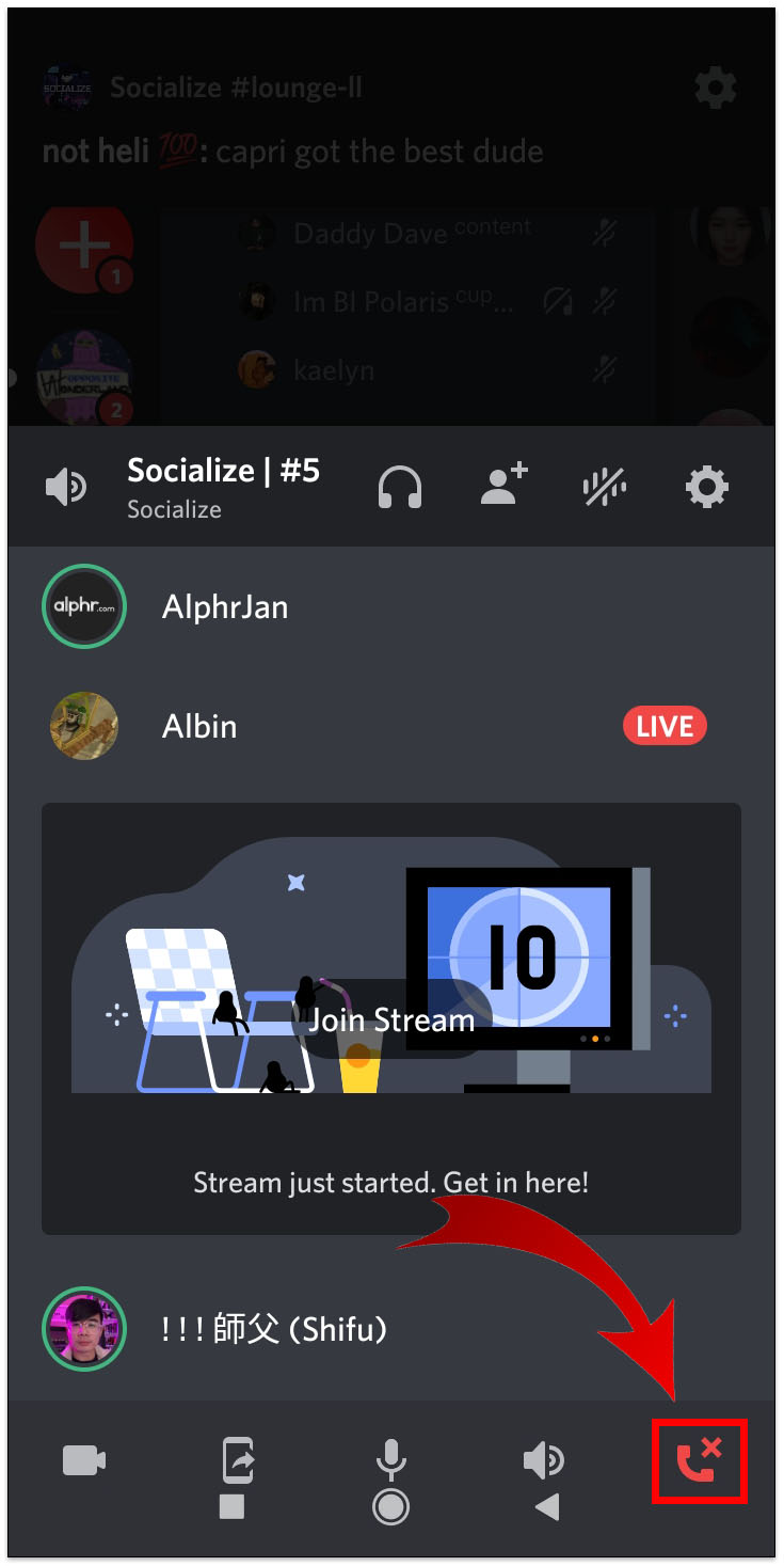 • Tap on the red disconnect icon. It’s on the bottom-right of the screen.