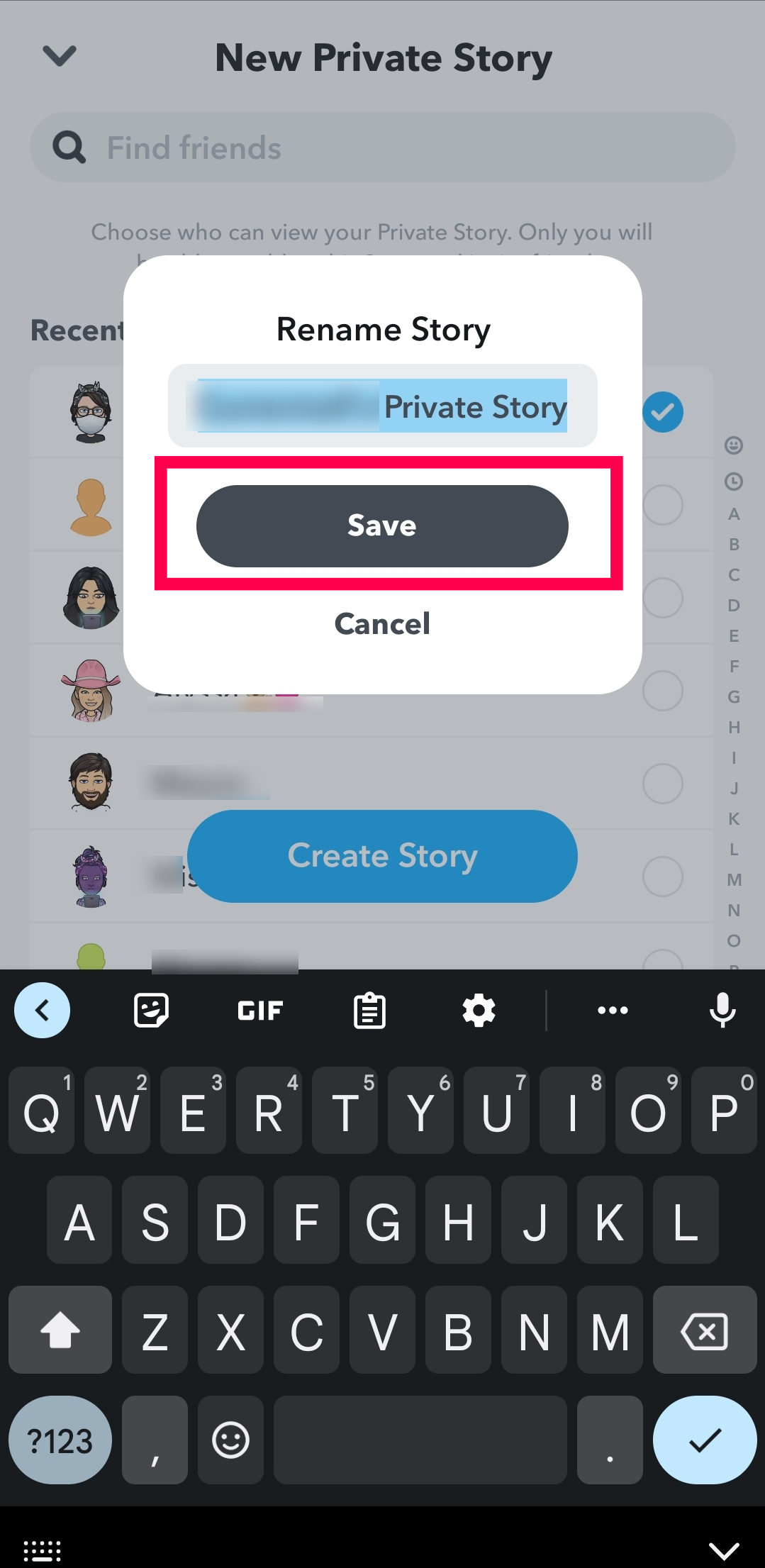 - Tap the bubbles to the right of the friends you’d like to add. Then, tap Create Story.