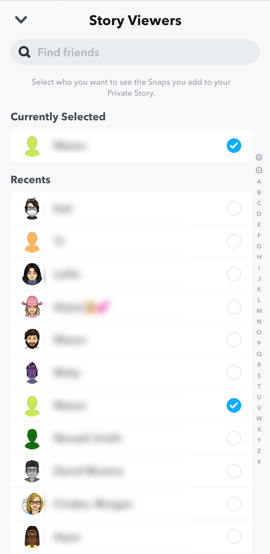 Now, only those who have a blue checkmark next to their name will see the Story you post. You can add and remove viewers as needed. You can also create an entirely new Private Story by following the steps listed above.