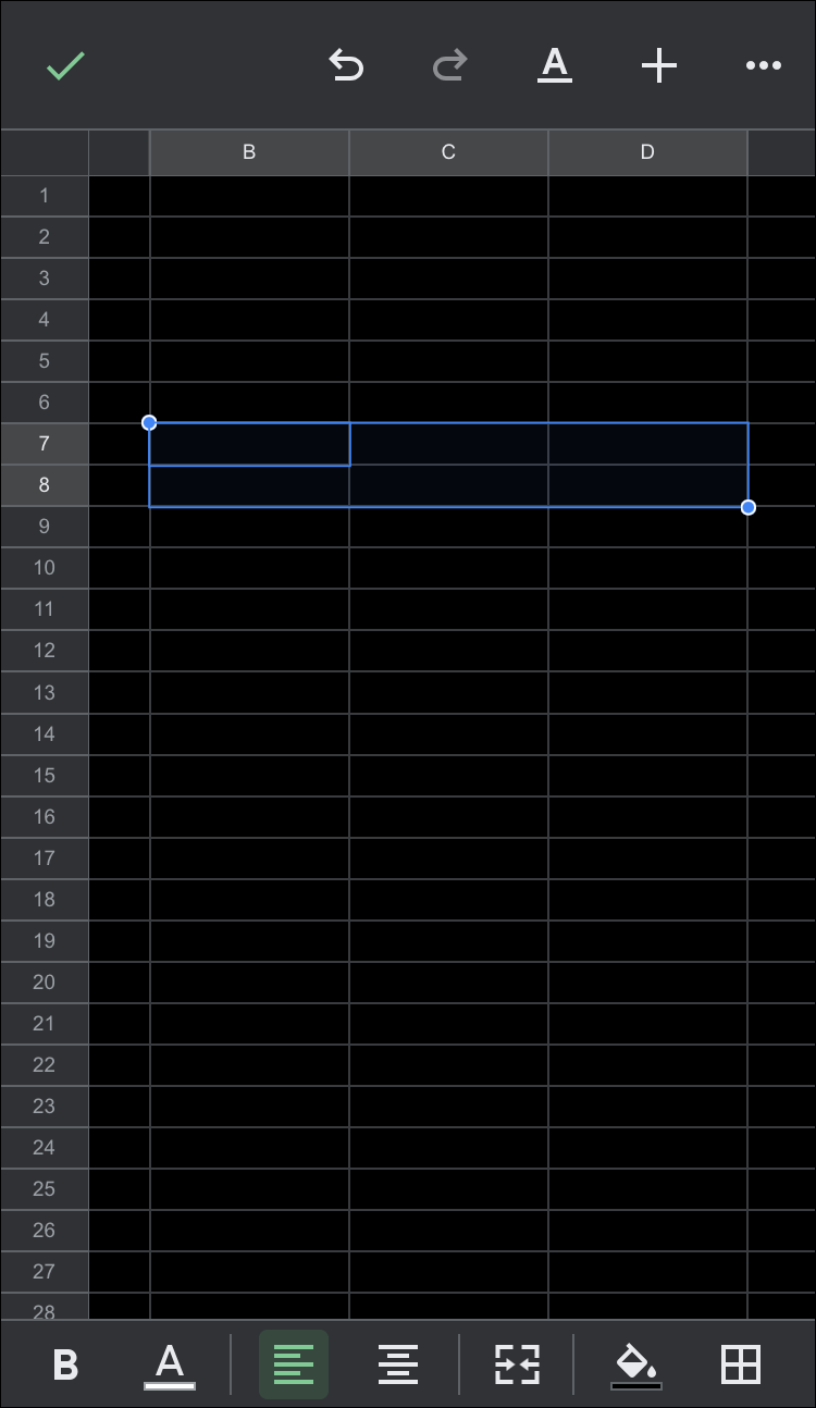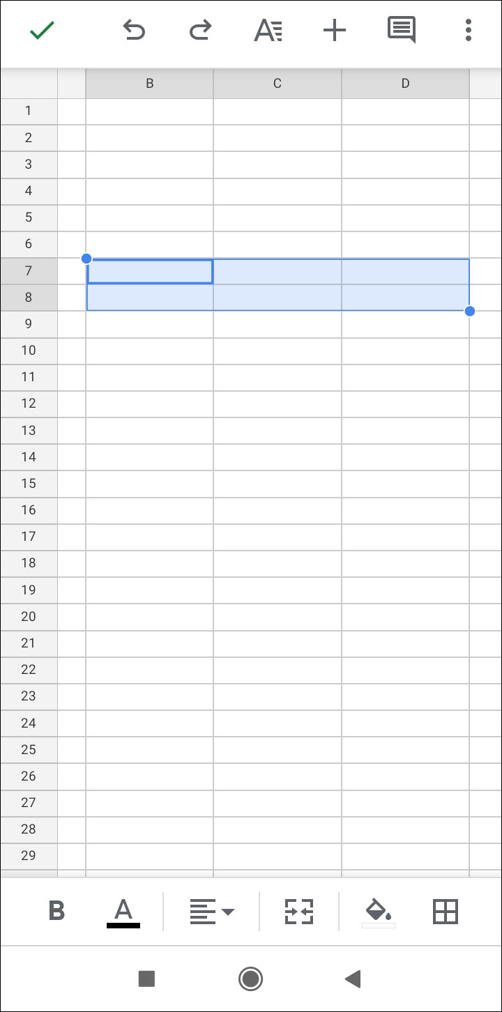 - Drag the blue handles around the cell to select all the other cells you’d like to merge.