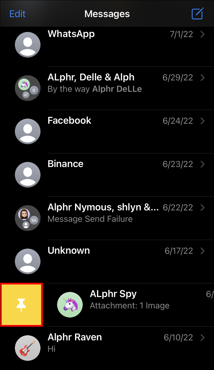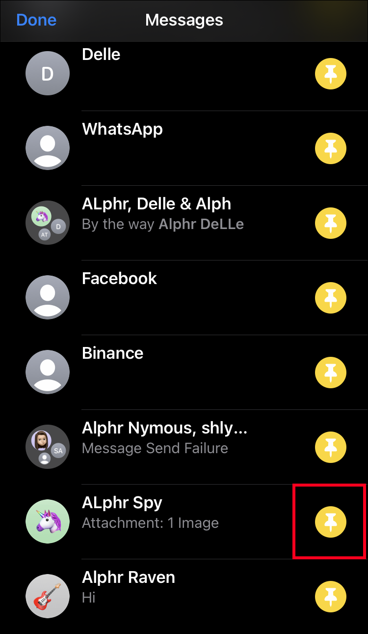 - Tap the yellow pin next to the conversation you wish to pin.