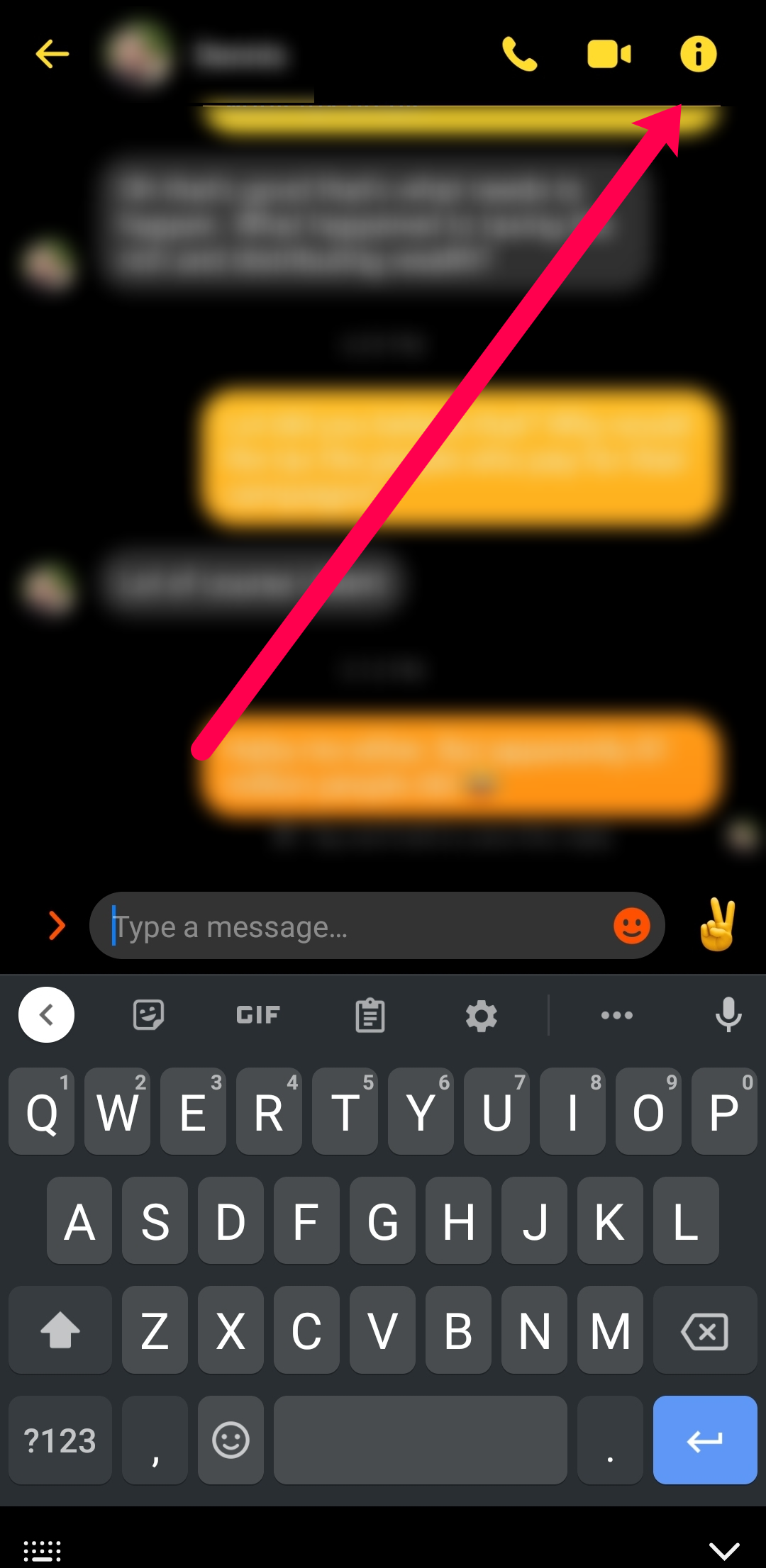 - Tap the “i” information button in a conversation if you’re using an Android device. iOS users will need to tap the users’ name at the top of the conversation.