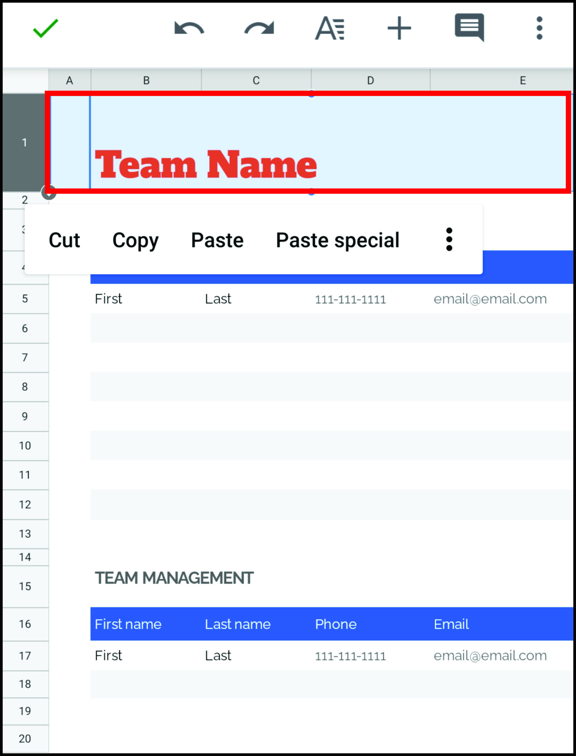 - Tap and hold the number in front of the first row. This should highlight the whole row and open a toolbar.