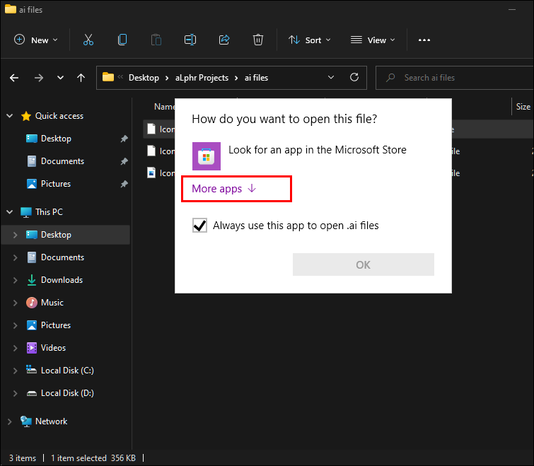 - Use your file explorer to navigate to the location of the .ai file.
